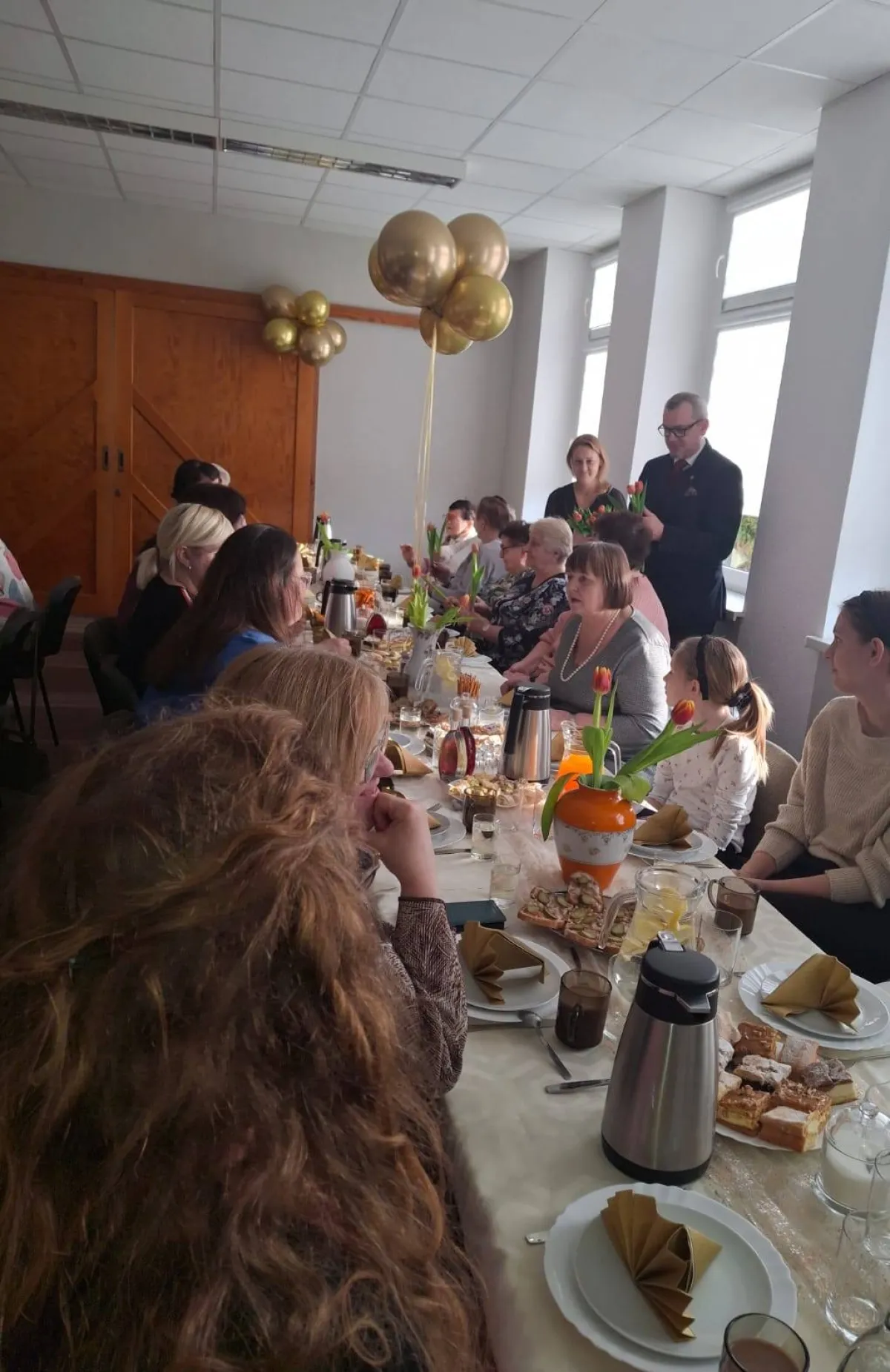 Spotkanie było okazją do rozmów, integracji oraz wspólnego świętowania. Burmistrz złożył wszystkim Paniom życzenia zdrowia, radości oraz spełnienia marzeń. Nie zabrakło także symbolicznych kwiatów i słodkiego poczęstunku.