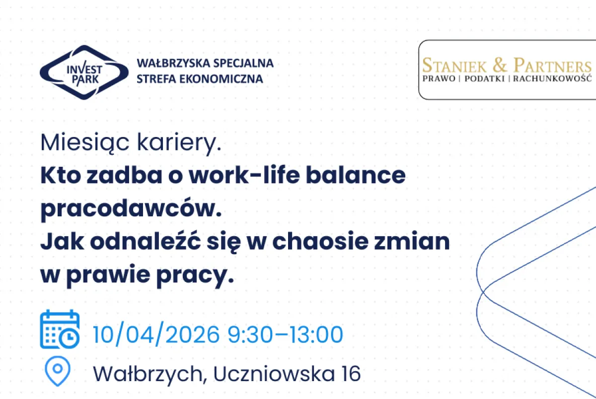 Wałbrzyska Specjalna Strefa Ekonomiczna „INVEST-PARK” sp. z o.o. w ramach Miesiąca Kariery WSSE, zaprasza przedsiębiorców oraz pracowników z terenu gminy Ozimek do udziału w spotkaniu warsztatowym dotyczącym aktualnych zmian w prawie pracy.