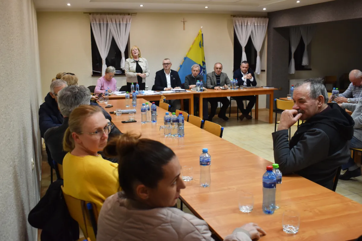 Sołtys powitała zebranych, a w imieniu swoim i rady sołeckiej przedstawiła sprawozdanie z działalności w 2025 roku. W prezentacji szczegółowo omówiła między innymi działania realizowane w ramach funduszu sołeckiego, w tym budowę ogrodzenia placu wiejskiego za remizą OSP.