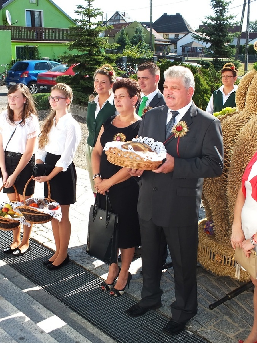 Odbyło się również przekazanie chleba dożynkowego włodarzowi gminy przez starostów dożynek Józefa i Gabriellę Wiora. Ks. proboszcz J. Bejnar pobłogosławił chleb, a burmistrz zgodnie z tradycją sprawiedliwie podzielił go wśród zebranych – jako symbol, aby nigdy nikomu go nie zbrakło. Po części oficjalnej zaproszono wszystkich na kołacz śląski oraz drobny poczęstunek.
