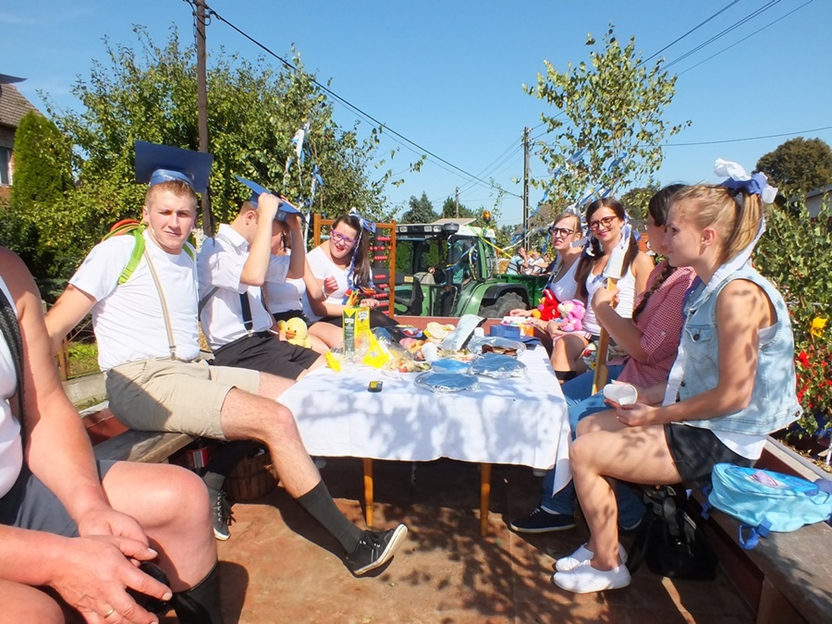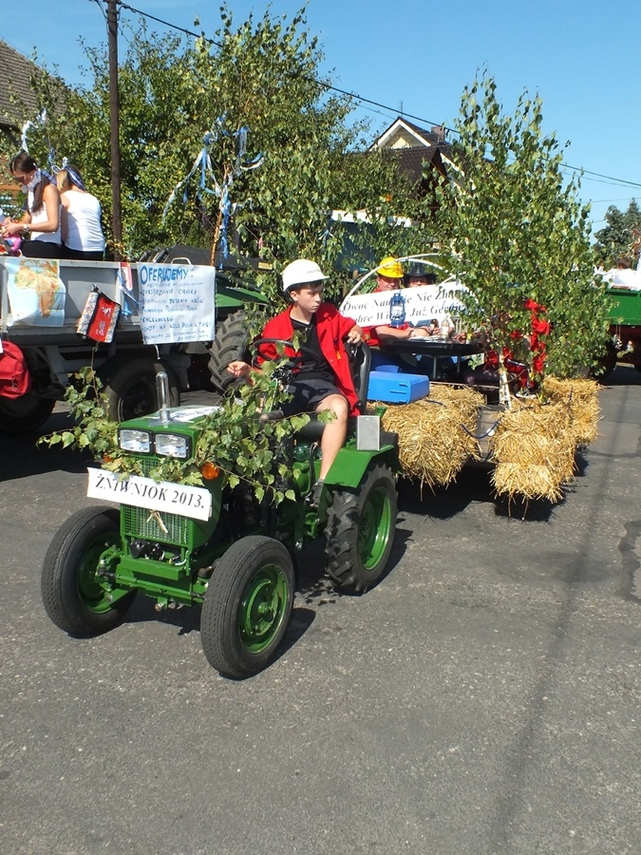 O godz. 14:00 uformowano tradycyjny korowód dożynkowy, który przejechał ulicami miejscowości. W tym roku udział wzięła bardzo duża liczba barwnych wozów dożynkowych i przebierańców, co świadczy o silnym zaangażowaniu mieszkańców w życie kulturalne wsi oraz dbaniu o lokalną tradycję. Przystrojono również miejscowość oraz posesje.