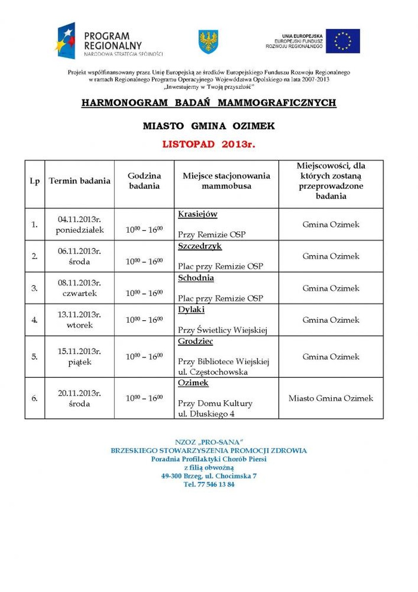 Bezpłatne badania mammograficzne w Gminie Ozimek