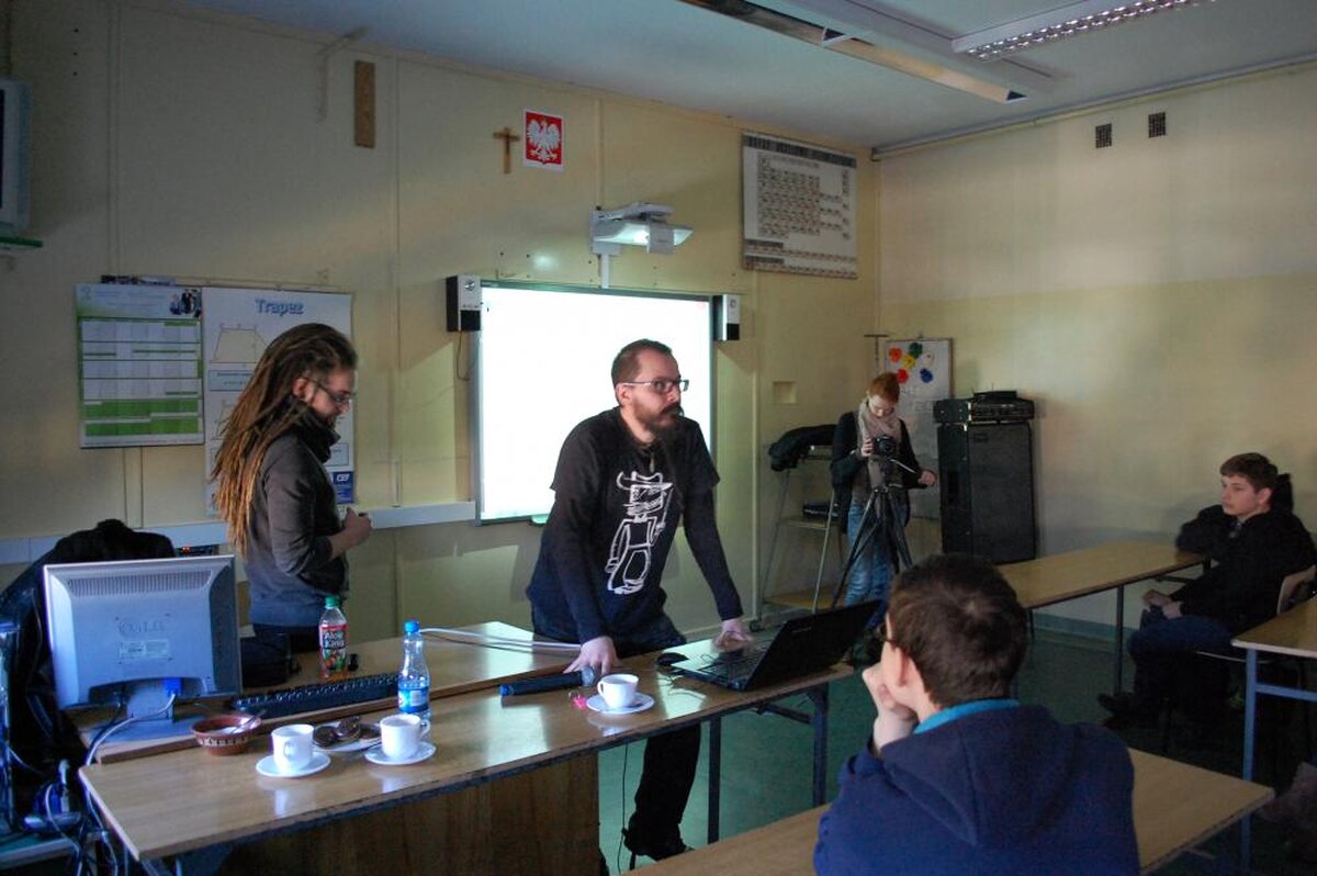 Paulina Ptaszyńska, Bartosz Posacki oraz Michał Misiura z Instytutu Sztuki Uniwersytetu Opolskiego gościli podczas prelekcji w ZS Ozimek. Nasi artyści zaprezentowali Instytut Sztuki UO, jego działalność, bazę dydaktyczną. Uczniowie naszego zespołu mogli obejrzeć prace studentów oraz prelegentów z zakresu animacji filmowej, grafiki komputerowej, mappingu. Dwugodzinna prezentacja wzbudziła bardzo duże zainteresowanie wśród uczniów, być może niektórzy z nich w nowoczesnej multimedialnej sztuce znajdą dla siebie miejsce. Dziękujemy serdecznie naszym gościom za spotkanie.