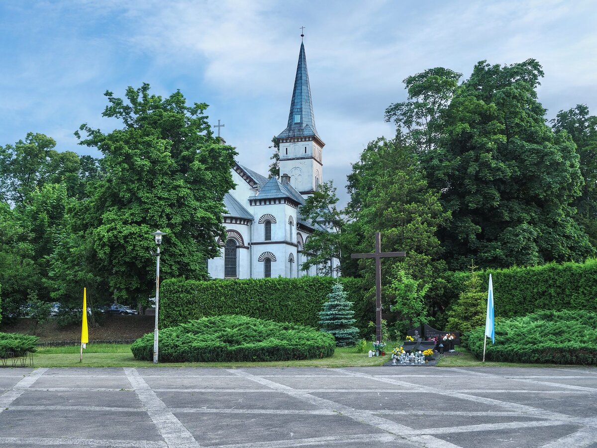 Neobarokowy kościół zbudowany w latach 1911 – 1913. Wnętrze zdobione jest malowidłami przedstawiającymi sceny biblijne oraz licznymi złoceniami i ornamentyką. Organy, ołtarz i ambona wykonane zostały w Ratyzbonie. W bocznym ołtarzu podziwiać można kopię obrazu Matki Boskiej Częstochowskiej z XVII w.