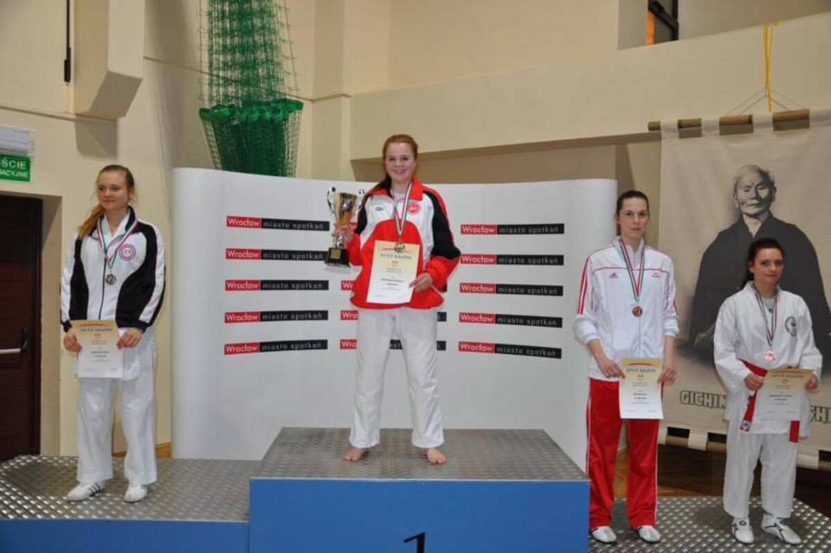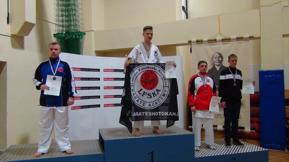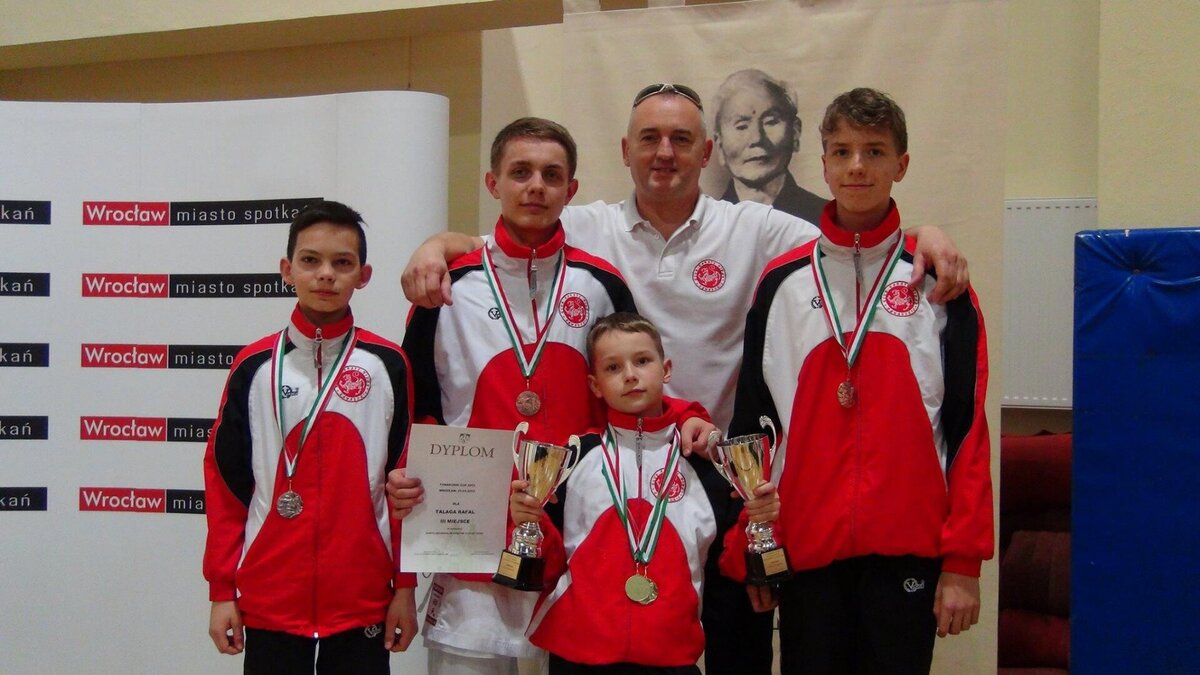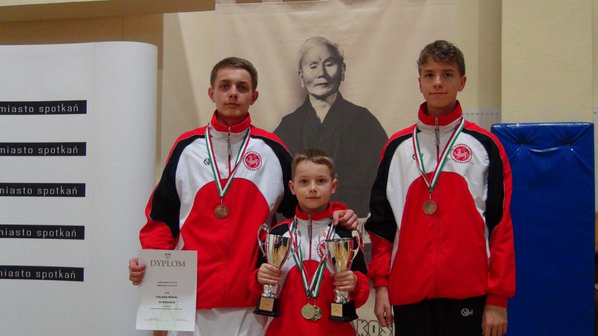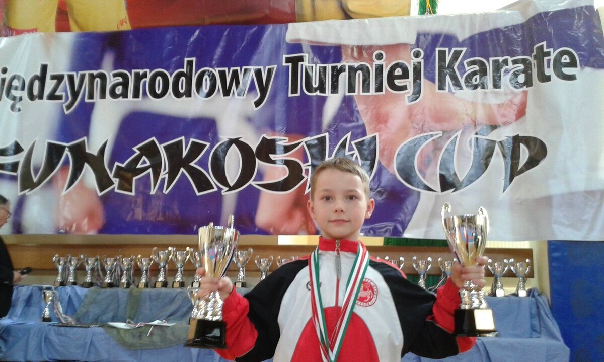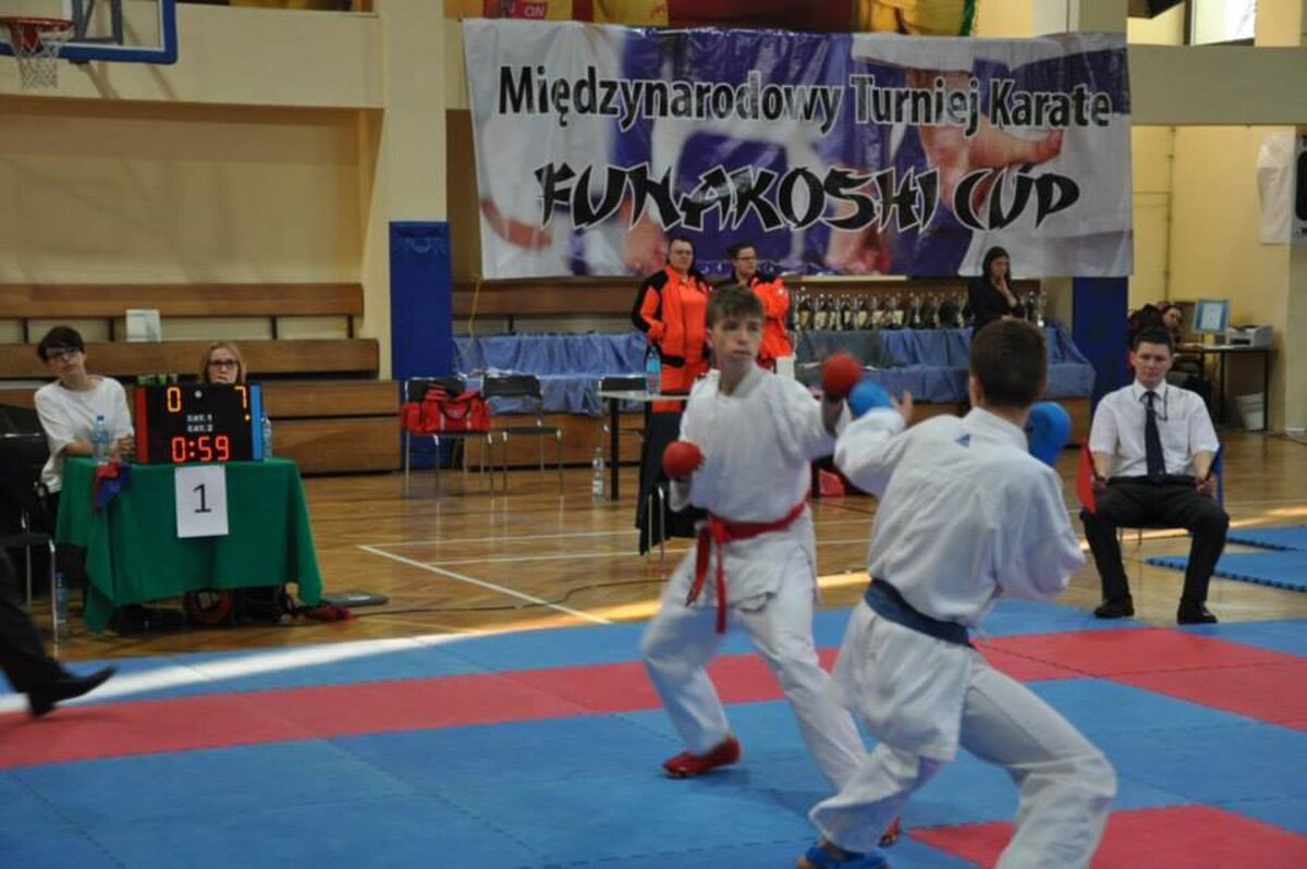 Przy okazji Seminarium od kilku już lat organizator, czyli AZS Wrocław organizuje w tym samym czasie turniej „Funakoshi CUP”. W tym roku do rywalizacji przystąpiło około 400 zawodników z Litwy, Ukrainy, Czech i Polski. Naszą sekcję na zawodach reprezentowali: Natalia Szponder, Mateusz Łapot, oraz bracia Michał i Rafał Talagowie. Jak można było się domyślać nasi karatecy nie wrócili z pustymi rękami. Natalia wystartowała w konkurencji kumite seniorek gdzie nie tracąc ani jednego punktu stanęła na najwyższym stopniu podium. Świetny występ zaliczył również Mateusz, który w kumite chłopców -63 zdobył brąz. Starszy z braci Rafał również startował w kumite, lecz ze względu na małą ilość zawodników w tej kategorii organizator postanowił połączyć konkurencje. I tak po 4 walkach 3 wygranych i 1 przegranej Rafał wywalczył najniższy stopień podium. Natomiast młodszy z braci Michał jak już zdążył nas przyzwyczaić nie miał sobie równych zarówno w kata jak i kumite zgarniając w obu konkurencjach krążki z najcenniejszego kruszcu. Zawodnicy mogą uznać ten turniej do bardzo udanych a wyniki potwierdzają wysoką formę na początku sezonu startowego. Gratulujemy