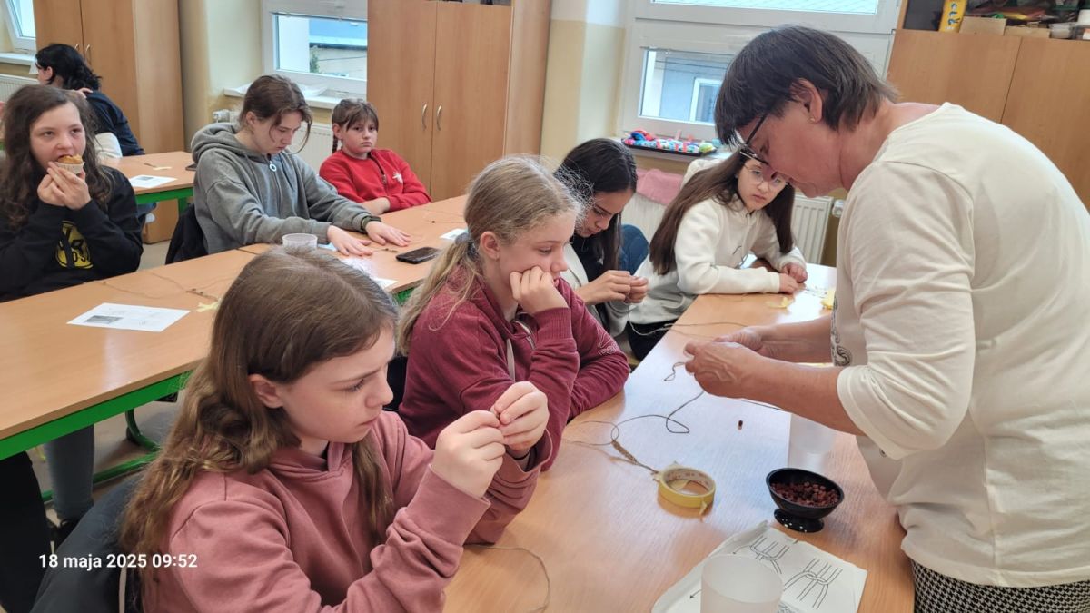 Trzeci dzień był dla nas równie atrakcyjny jak poprzednie. Tym razem skupiliśmy na tworzeniu bransoletek ze sznurka, które upiększaliśmy brązowymi koralikami. Naturalna biżuteria stała się więc piękną ozdobą naszych dłoni. Spotkanie polskich i czeskich uczestników projektu zwieńczyliśmy wspólną, pamiątkową fotografią.