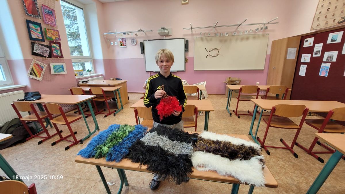 Następnie przenieśliśmy się do budynku szkoły, by z pasją realizować nowe, kreatywne przedsięwzięcia. Wykorzystując owczą wełnę, filcowaliśmy kuleczki, ozdoby do breloczków, broszki, kolczyki oraz niezwykłe postaci zwierząt czy ludzi. Przygotowywaliśmy także mydełka do peelingu, które ozdabialiśmy kolorowymi pasmami włóczki oraz kończyliśmy nasze tkackie prace. Wszystkie przedsięwzięcia tak bardzo nas pochłonęły, że nie odczuliśmy kilkugodzinnego upływu czasu, a stworzone przez nas prace zachwyciły czeskich animatorów. Dzień zakończyliśmy, relaksując się w Aquaparku.